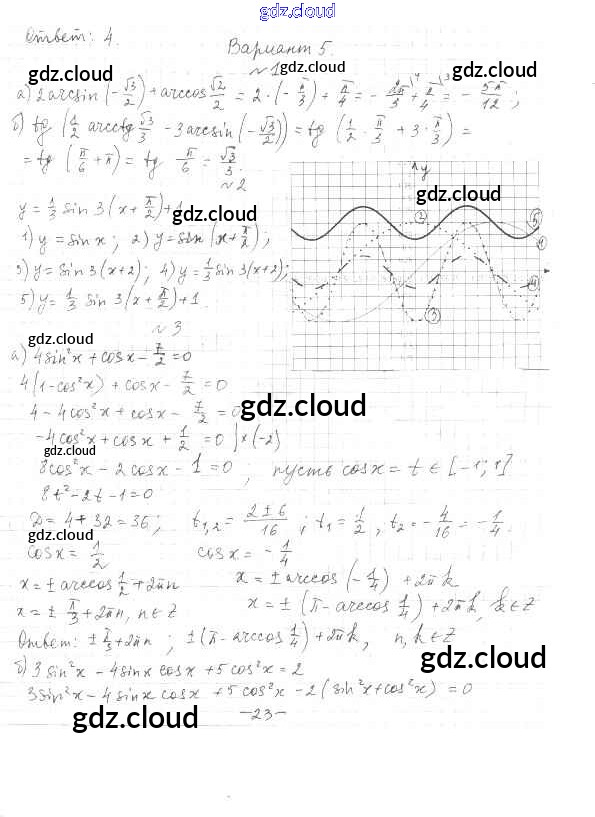 Ответ на задание вариант 5 Контрольные работы Алгебра за 10 (десятый) класс Глизбург Базовый и углубленный уровень 2014