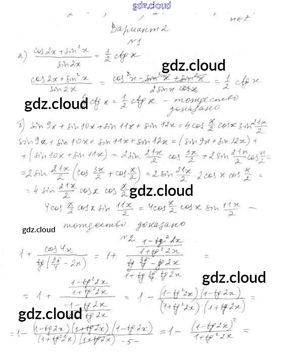 Ответ на задание вариант 2 Контрольные работы Алгебра за 10 (десятый) класс Глизбург Базовый и углубленный уровень 2014