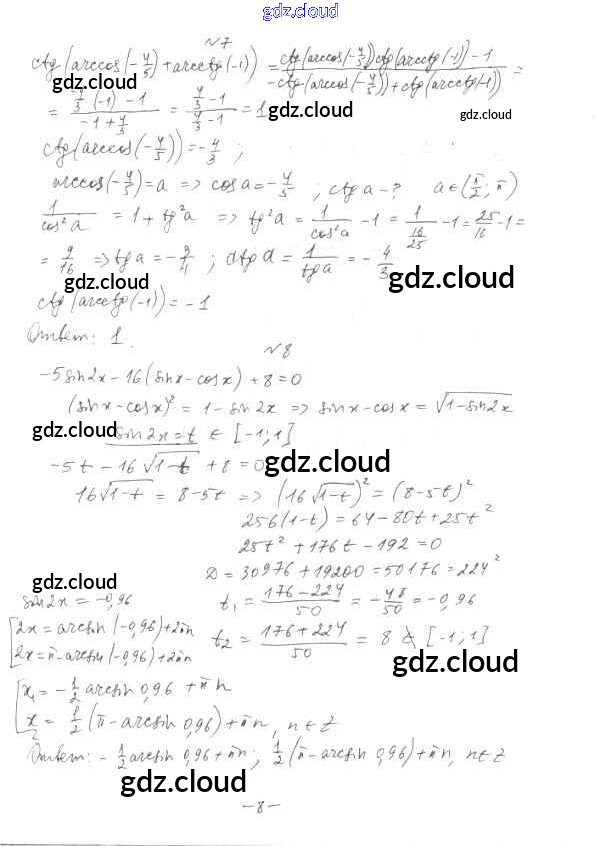 КР-5 Ответы к Контрольным работам по Алгебре 10 класс Контрольные работы Глизбург Базовый и углубленный уровень Мнемозина