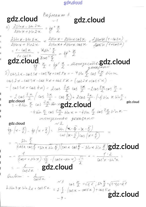 КР-5 Ответы к Контрольным работам по Алгебре 10 класс Контрольные работы Глизбург Базовый и углубленный уровень Мнемозина