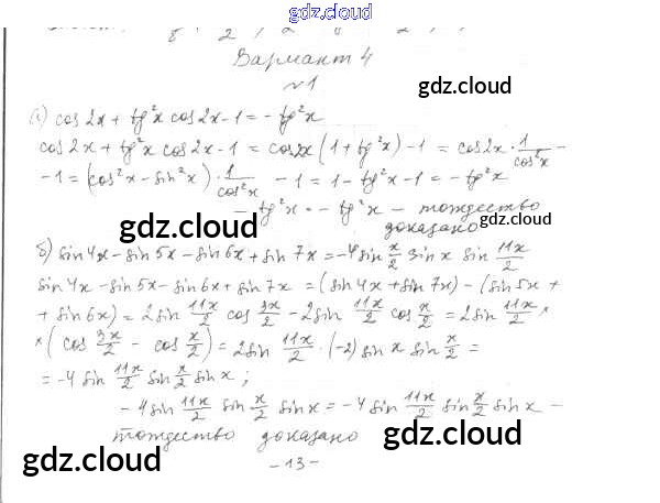 Ответ на задание вариант 4 Контрольные работы Алгебра за 10 (десятый) класс Глизбург Базовый и углубленный уровень 2014