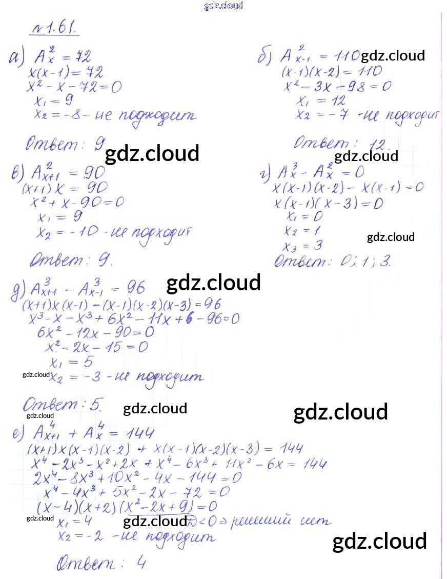 Ответ на задание 61 Учебник Алгебра за 10 (десятый) класс Никольский, Потапов, Решетников, Шевкин МГУ - школе Базовый и углубленный уровень 2015