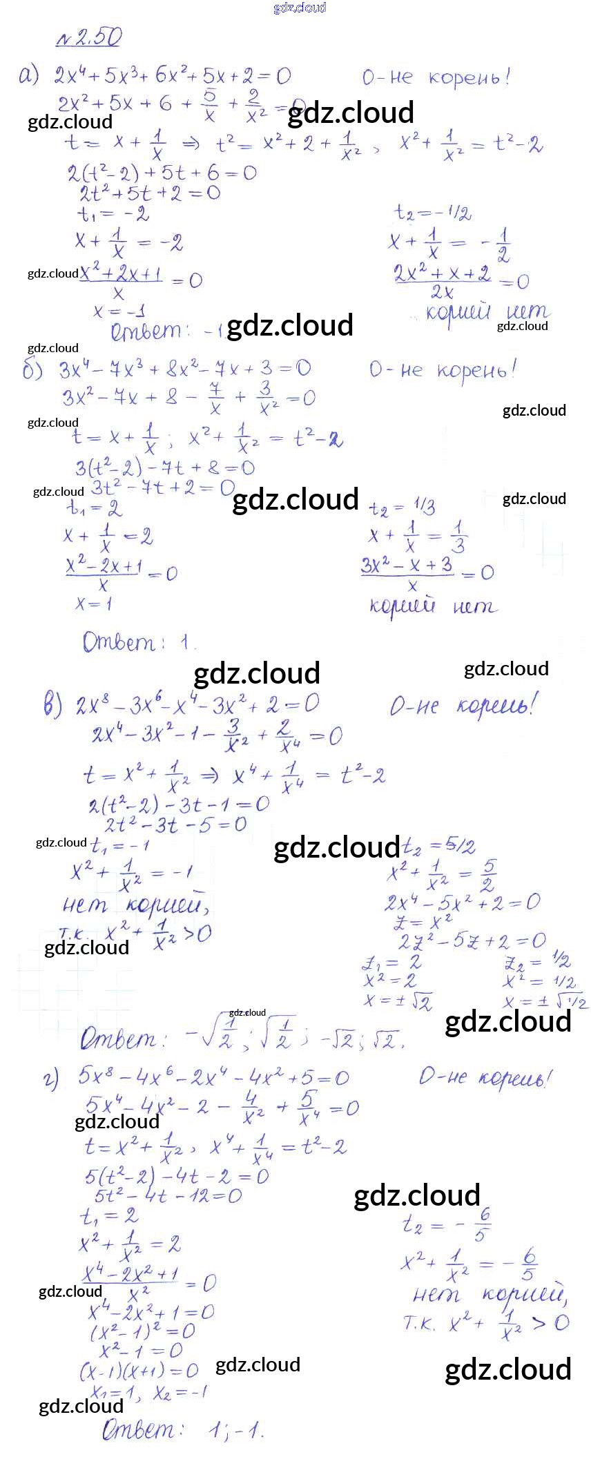 Ответ на задание 50 Учебник Алгебра за 10 (десятый) класс Никольский, Потапов, Решетников, Шевкин МГУ - школе Базовый и углубленный уровень 2015