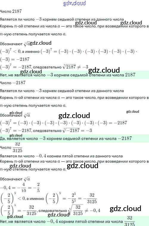 §3. Корень степени n Ответы. Глава 1. Корни, степени, логарифмы по Алгебре 10 класс Учебник Никольский МГУ - школе Базовый и углубленный уровень Просвещение