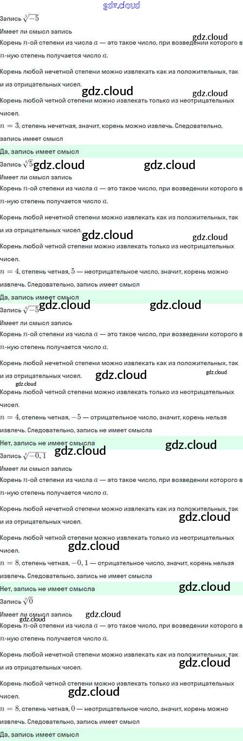 §3. Корень степени n Ответы. Глава 1. Корни, степени, логарифмы по Алгебре 10 класс Учебник Никольский МГУ - школе Базовый и углубленный уровень Просвещение