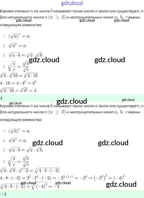 §3. Корень степени n Ответы. Глава 1. Корни, степени, логарифмы по Алгебре 10 класс Учебник Никольский МГУ - школе Базовый и углубленный уровень Просвещение