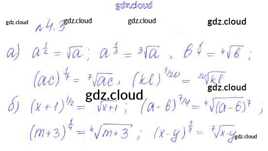 §4. Степень положительного числа Ответы к Главе 1. Корни, степени, логарифмы по Алгебре 10 класс Учебник Никольский МГУ - школе Базовый и углубленный уровень Просвещение