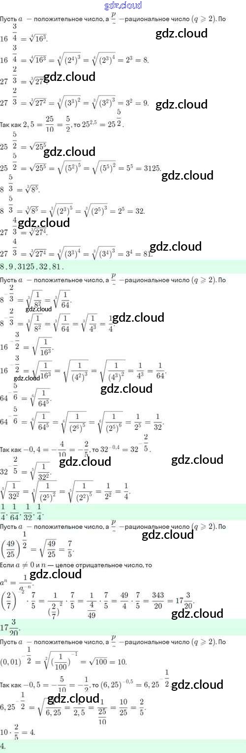 §4. Степень положительного числа Ответы. Глава 1. Корни, степени, логарифмы по Алгебре 10 класс Учебник Никольский МГУ - школе Базовый и углубленный уровень Просвещение