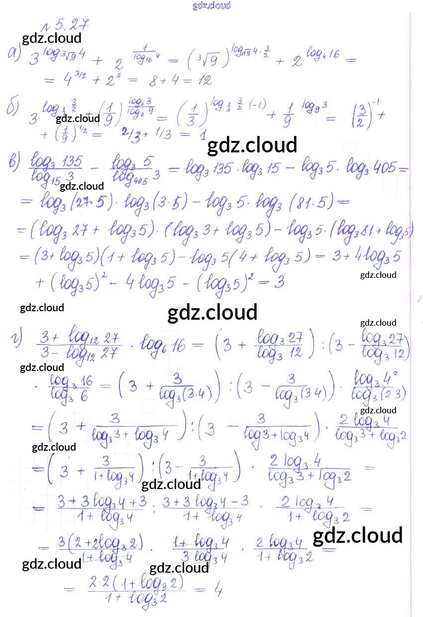 Ответ на задание 27 Учебник Алгебра за 10 (десятый) класс Никольский, Потапов, Решетников, Шевкин МГУ - школе Базовый и углубленный уровень 2015