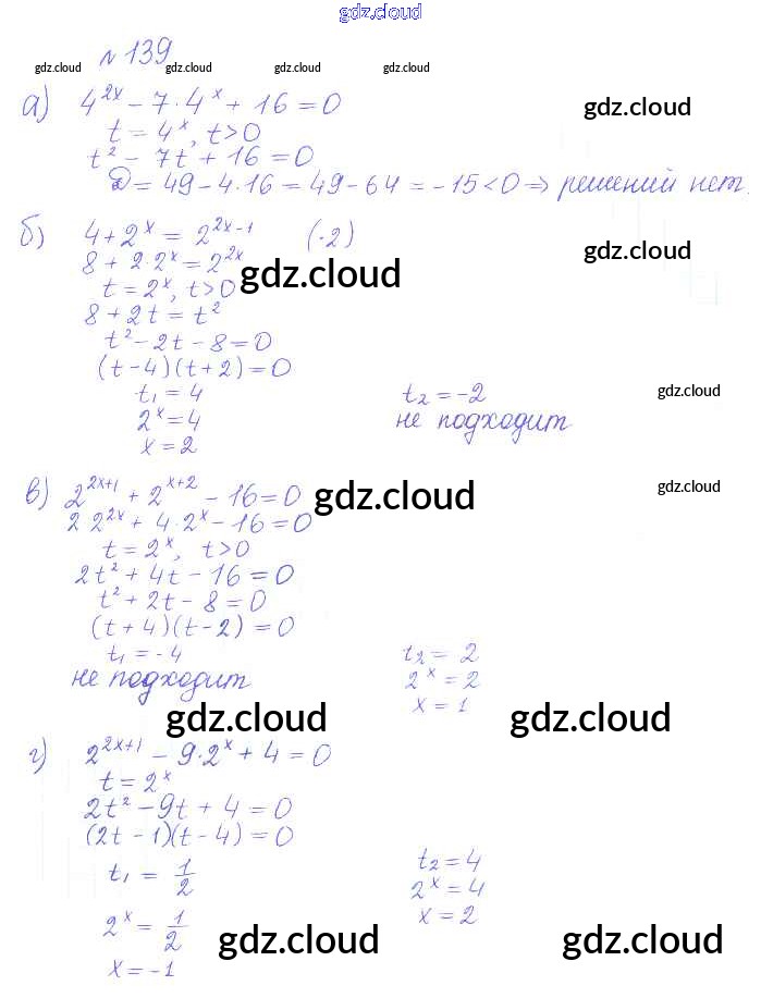 Ответ на задание 139 Учебник Алгебра за 10 (десятый) класс Никольский, Потапов, Решетников, Шевкин МГУ - школе Базовый и углубленный уровень 2015
