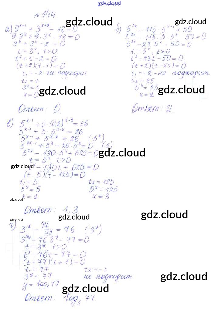Ответ на задание 144 Учебник Алгебра за 10 (десятый) класс Никольский, Потапов, Решетников, Шевкин МГУ - школе Базовый и углубленный уровень 2015