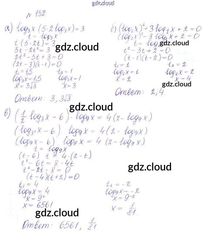 Ответ на задание 152 Учебник Алгебра за 10 (десятый) класс Никольский, Потапов, Решетников, Шевкин МГУ - школе Базовый и углубленный уровень 2015