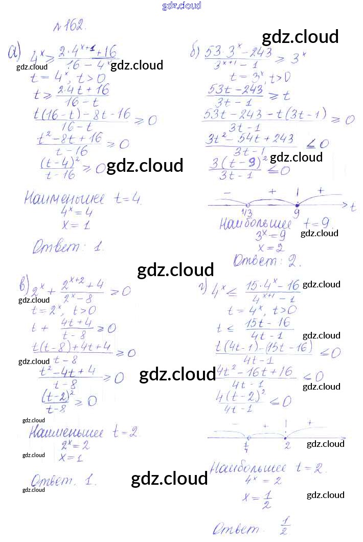 Ответ на задание 162 Учебник Алгебра за 10 (десятый) класс Никольский, Потапов, Решетников, Шевкин МГУ - школе Базовый и углубленный уровень 2015