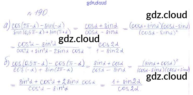 Ответ на задание 190 Учебник Алгебра за 10 (десятый) класс Никольский, Потапов, Решетников, Шевкин МГУ - школе Базовый и углубленный уровень 2015