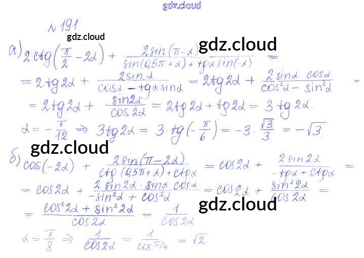 Ответ на задание 191 Учебник Алгебра за 10 (десятый) класс Никольский, Потапов, Решетников, Шевкин МГУ - школе Базовый и углубленный уровень 2015