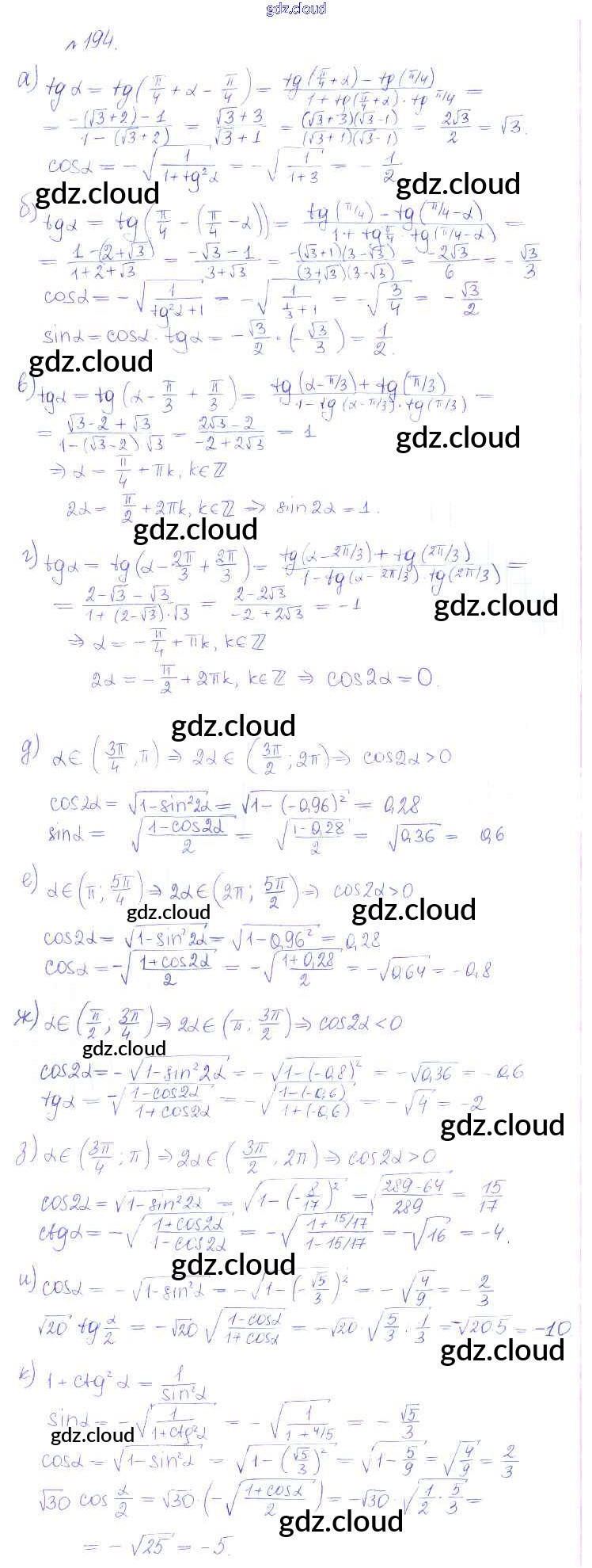 Ответ на задание 194 Учебник Алгебра за 10 (десятый) класс Никольский, Потапов, Решетников, Шевкин МГУ - школе Базовый и углубленный уровень 2015