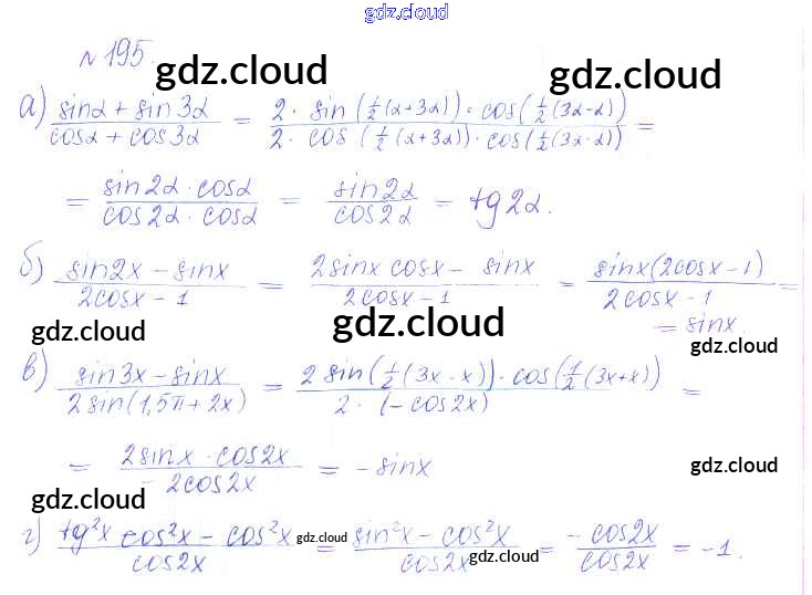 Ответ на задание 195 Учебник Алгебра за 10 (десятый) класс Никольский, Потапов, Решетников, Шевкин МГУ - школе Базовый и углубленный уровень 2015