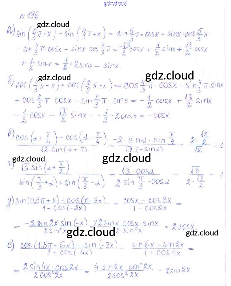 Ответ на задание 196 Учебник Алгебра за 10 (десятый) класс Никольский, Потапов, Решетников, Шевкин МГУ - школе Базовый и углубленный уровень 2015