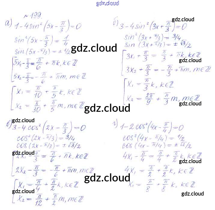 Ответ на задание 199 Учебник Алгебра за 10 (десятый) класс Никольский, Потапов, Решетников, Шевкин МГУ - школе Базовый и углубленный уровень 2015