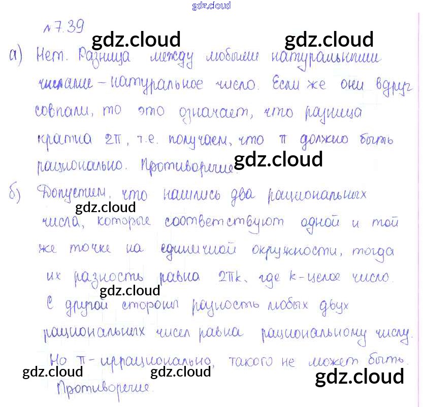 Ответ на задание 39 Учебник Алгебра за 10 (десятый) класс Никольский, Потапов, Решетников, Шевкин МГУ - школе Базовый и углубленный уровень 2015