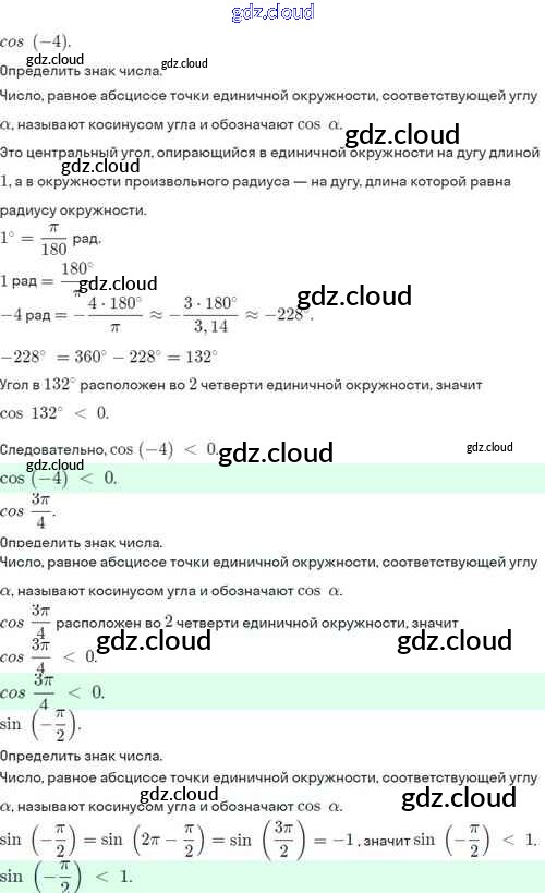 §7. Синус и косинус угла Ответы. Глава 2. Тригонометрические формулы. Тригонометрические функции по Алгебре 10 класс Учебник Никольский МГУ - школе Базовый и углубленный уровень Просвещение
