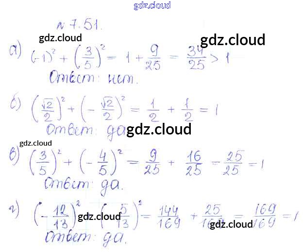 Ответ на задание 51 Учебник Алгебра за 10 (десятый) класс Никольский, Потапов, Решетников, Шевкин МГУ - школе Базовый и углубленный уровень 2015