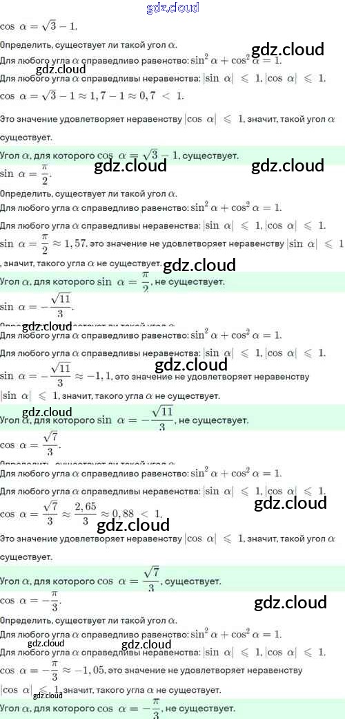 §7. Синус и косинус угла Ответы. Глава 2. Тригонометрические формулы. Тригонометрические функции по Алгебре 10 класс Учебник Никольский МГУ - школе Базовый и углубленный уровень Просвещение