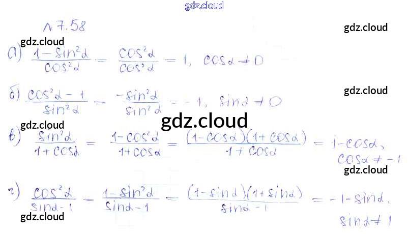 Ответ на задание 58 Учебник Алгебра за 10 (десятый) класс Никольский, Потапов, Решетников, Шевкин МГУ - школе Базовый и углубленный уровень 2015
