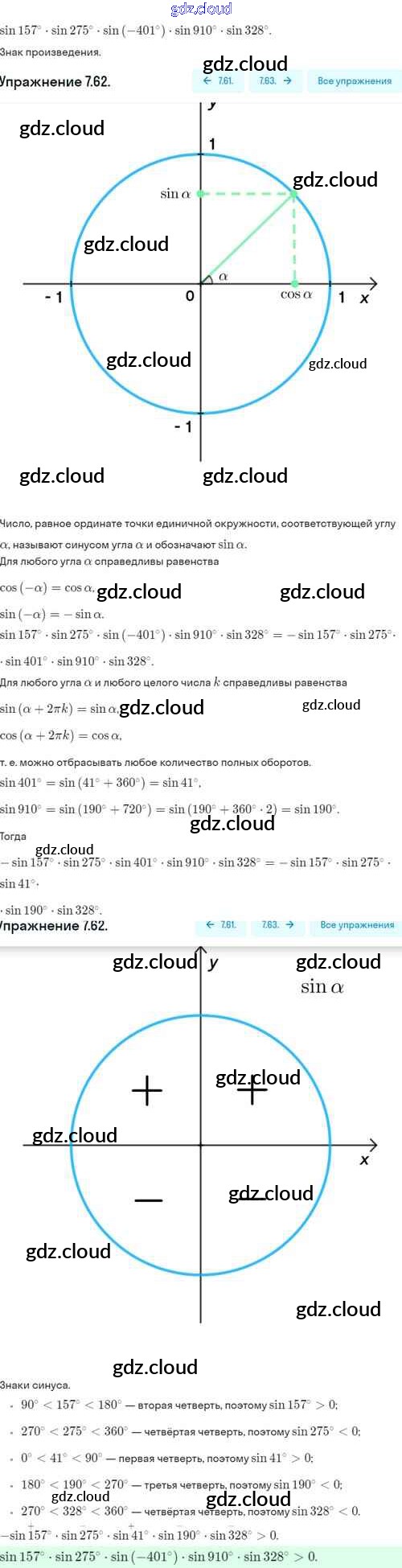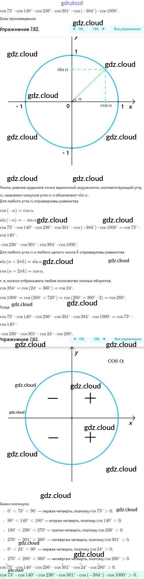 Ответ на задание 7.62 Учебник Алгебра за 10 (десятый) класс Никольский, Потапов, Решетников, Шевкин МГУ - школе Базовый и углубленный уровень 2015