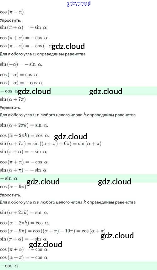 §7. Синус и косинус угла Ответы. Глава 2. Тригонометрические формулы. Тригонометрические функции по Алгебре 10 класс Учебник Никольский МГУ - школе Базовый и углубленный уровень Просвещение