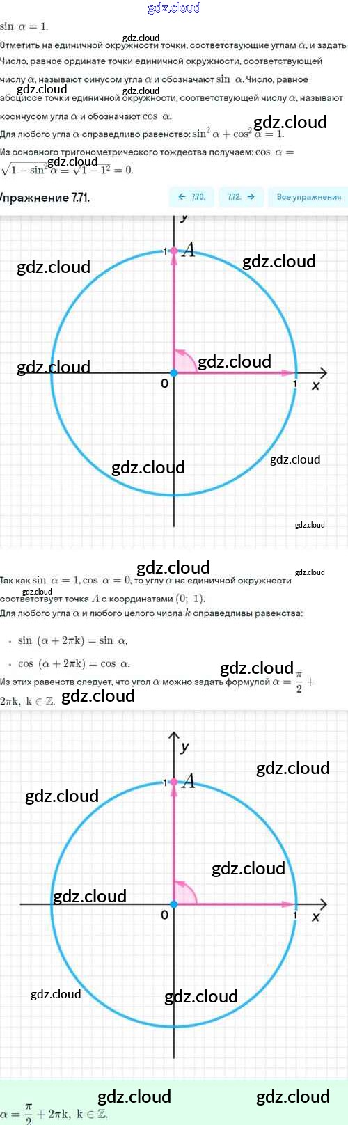 §7. Синус и косинус угла Ответы. Глава 2. Тригонометрические формулы. Тригонометрические функции по Алгебре 10 класс Учебник Никольский МГУ - школе Базовый и углубленный уровень Просвещение