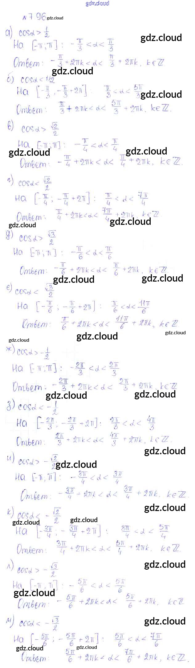 Ответ на задание 96 Учебник Алгебра за 10 (десятый) класс Никольский, Потапов, Решетников, Шевкин МГУ - школе Базовый и углубленный уровень 2015