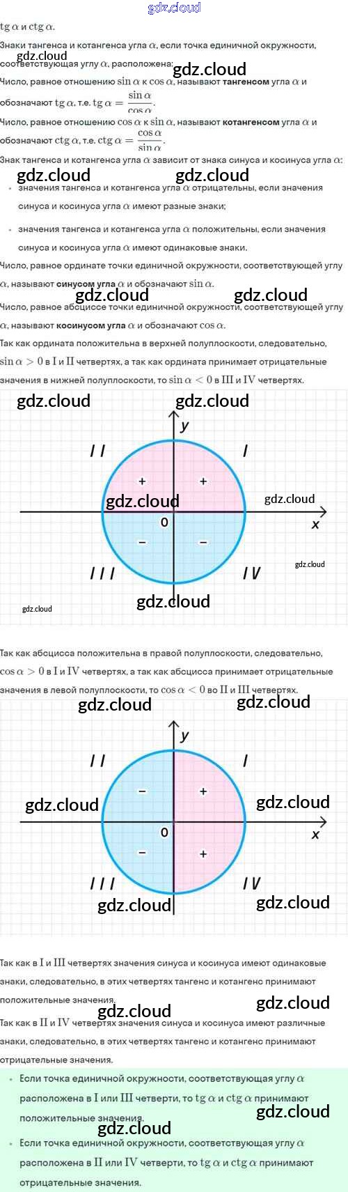 §8. Тангес и катангес угла Ответы. Глава 2. Тригонометрические формулы. Тригонометрические функции по Алгебре 10 класс Учебник Никольский МГУ - школе Базовый и углубленный уровень Просвещение