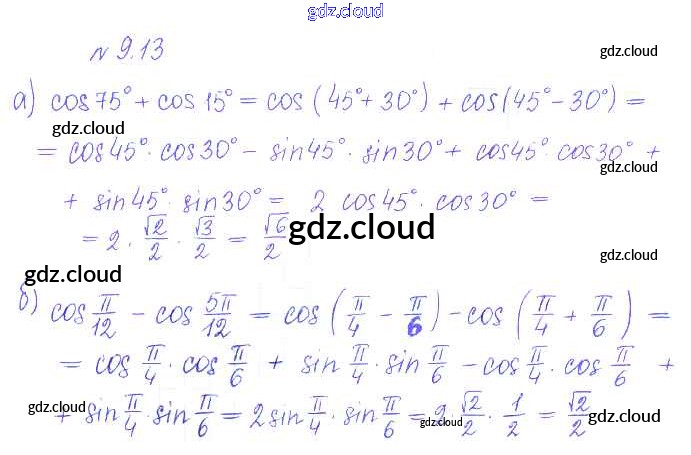 §9. Формулы сложения Ответы к Главе 2. Тригонометрические формулы. Тригонометрические функции по Алгебре 10 класс Учебник Никольский МГУ - школе Базовый и углубленный уровень Просвещение
