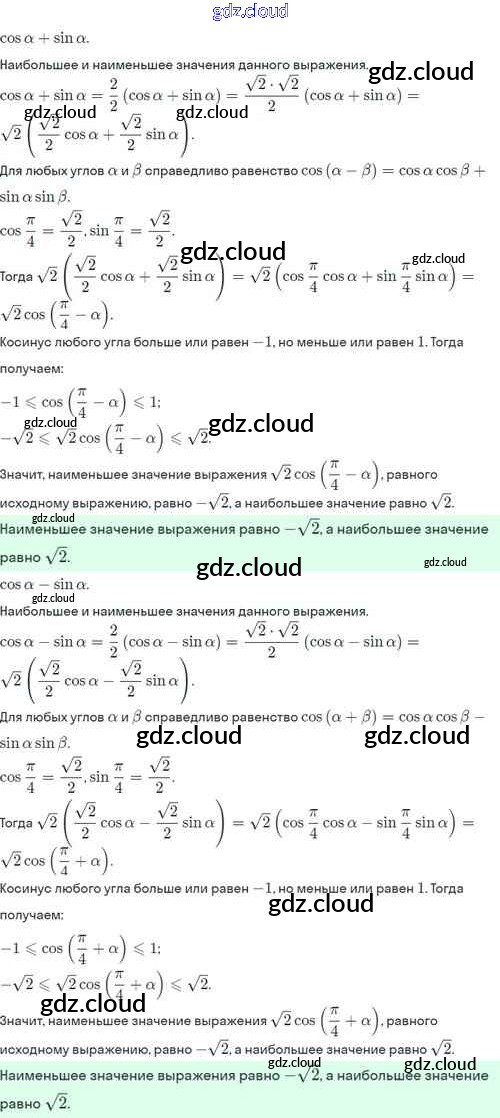 §9. Формулы сложения Ответы. Глава 2. Тригонометрические формулы. Тригонометрические функции по Алгебре 10 класс Учебник Никольский МГУ - школе Базовый и углубленный уровень Просвещение