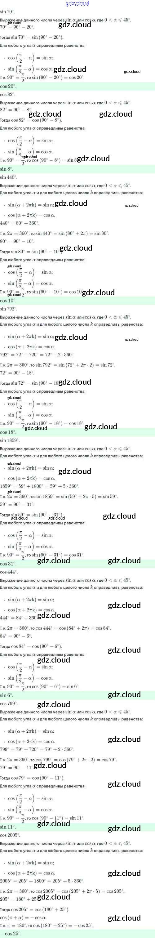 §9. Формулы сложения Ответы. Глава 2. Тригонометрические формулы. Тригонометрические функции по Алгебре 10 класс Учебник Никольский МГУ - школе Базовый и углубленный уровень Просвещение
