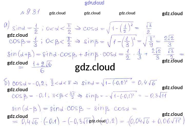 §9. Формулы сложения Ответы к Главе 2. Тригонометрические формулы. Тригонометрические функции по Алгебре 10 класс Учебник Никольский МГУ - школе Базовый и углубленный уровень Просвещение