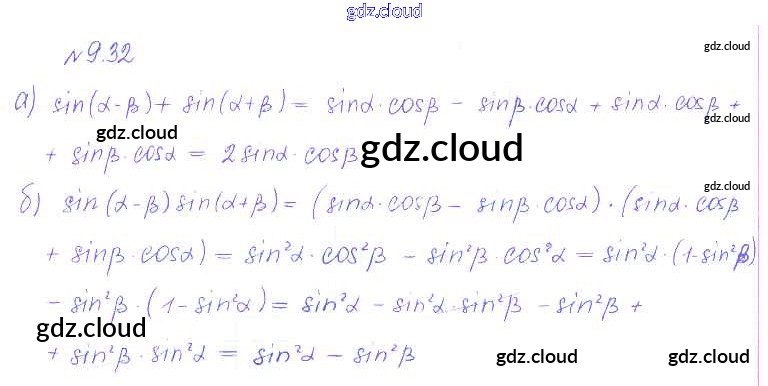 §9. Формулы сложения Ответы к Главе 2. Тригонометрические формулы. Тригонометрические функции по Алгебре 10 класс Учебник Никольский МГУ - школе Базовый и углубленный уровень Просвещение