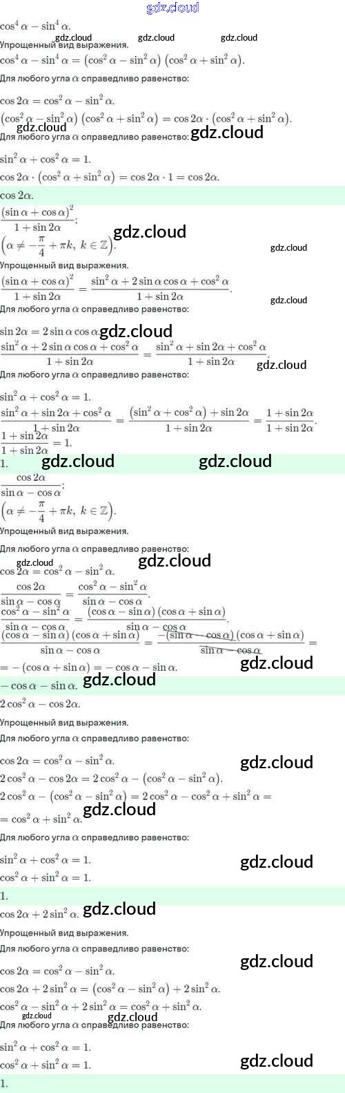 §9. Формулы сложения Ответы. Глава 2. Тригонометрические формулы. Тригонометрические функции по Алгебре 10 класс Учебник Никольский МГУ - школе Базовый и углубленный уровень Просвещение