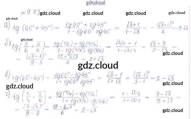 Ответ на задание 73 Учебник Алгебра за 10 (десятый) класс Никольский, Потапов, Решетников, Шевкин МГУ - школе Базовый и углубленный уровень 2015