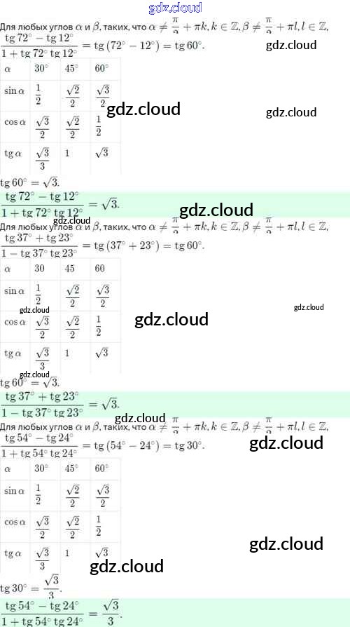 §9. Формулы сложения Ответы. Глава 2. Тригонометрические формулы. Тригонометрические функции по Алгебре 10 класс Учебник Никольский МГУ - школе Базовый и углубленный уровень Просвещение