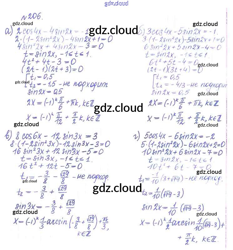 Ответ на задание 206 Учебник Алгебра за 10 (десятый) класс Никольский, Потапов, Решетников, Шевкин МГУ - школе Базовый и углубленный уровень 2015