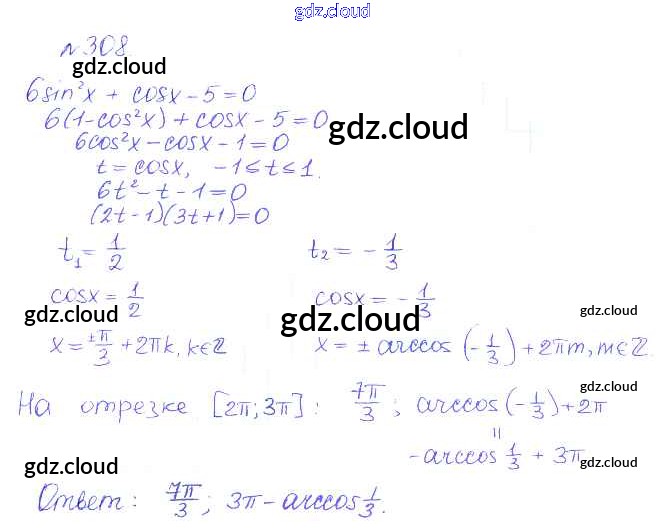 Ответ на задание 308 Учебник Алгебра за 10 (десятый) класс Никольский, Потапов, Решетников, Шевкин МГУ - школе Базовый и углубленный уровень 2015