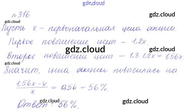 Ответ на задание 316 Учебник Алгебра за 10 (десятый) класс Никольский, Потапов, Решетников, Шевкин МГУ - школе Базовый и углубленный уровень 2015