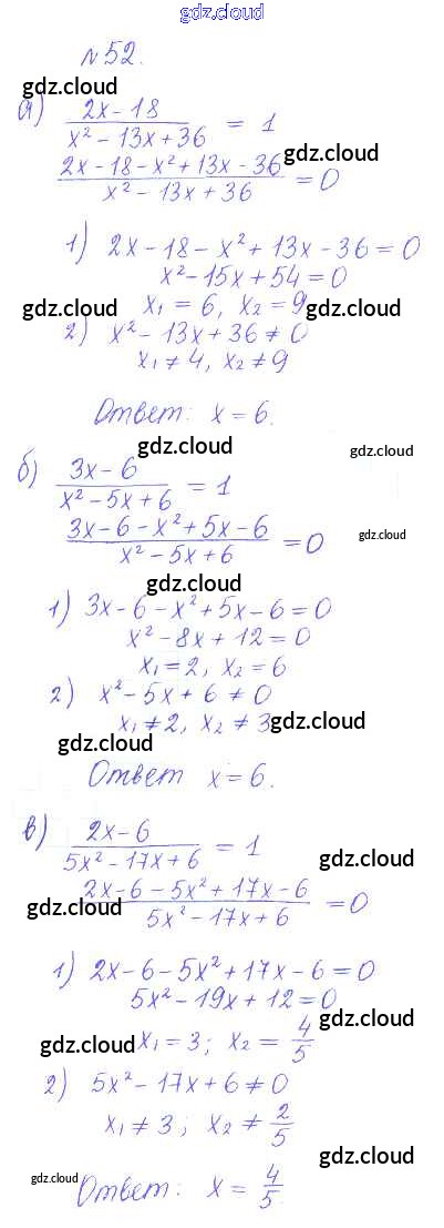 Ответ на задание 52 Учебник Алгебра за 10 (десятый) класс Никольский, Потапов, Решетников, Шевкин МГУ - школе Базовый и углубленный уровень 2015