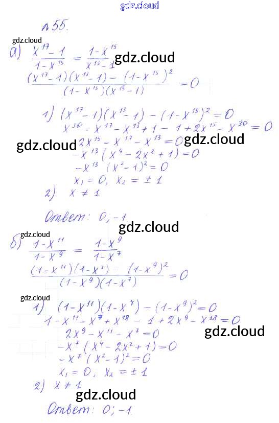 Ответ на задание 55 Учебник Алгебра за 10 (десятый) класс Никольский, Потапов, Решетников, Шевкин МГУ - школе Базовый и углубленный уровень 2015