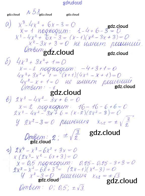 Ответ на задание 58 Учебник Алгебра за 10 (десятый) класс Никольский, Потапов, Решетников, Шевкин МГУ - школе Базовый и углубленный уровень 2015
