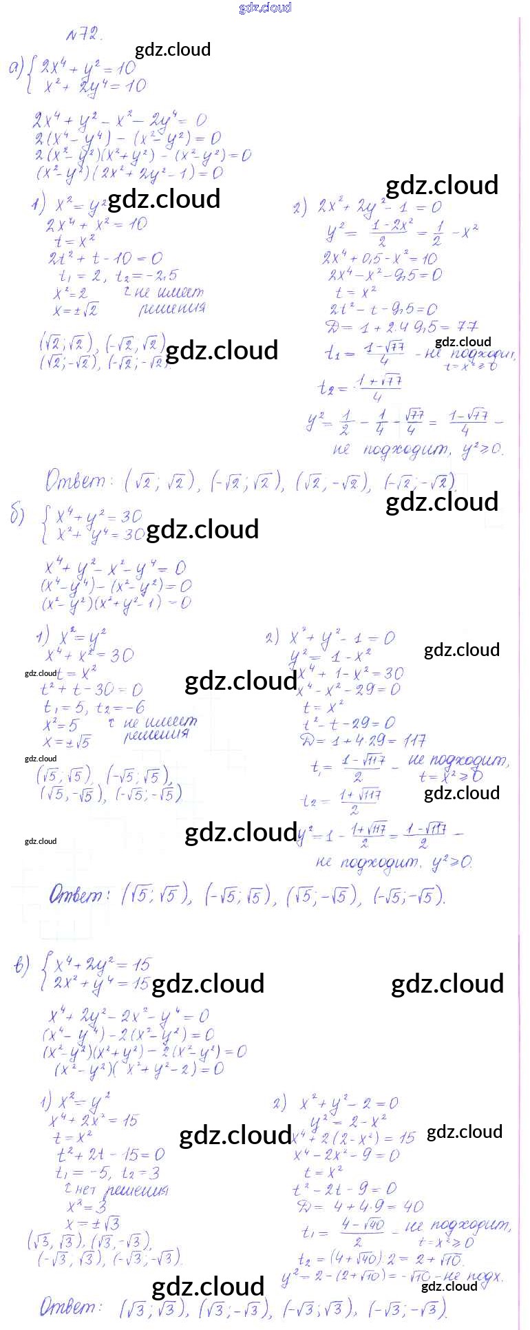 Ответ на задание 72 Учебник Алгебра за 10 (десятый) класс Никольский, Потапов, Решетников, Шевкин МГУ - школе Базовый и углубленный уровень 2015