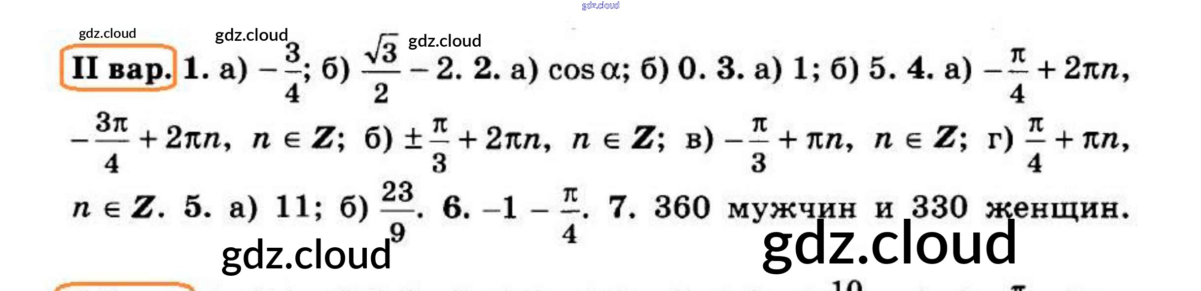 Ответы к Контрольной работе 5  по Алгебре 10 класс Дидактические материалы Потапов МГУ - школе   Просвещение