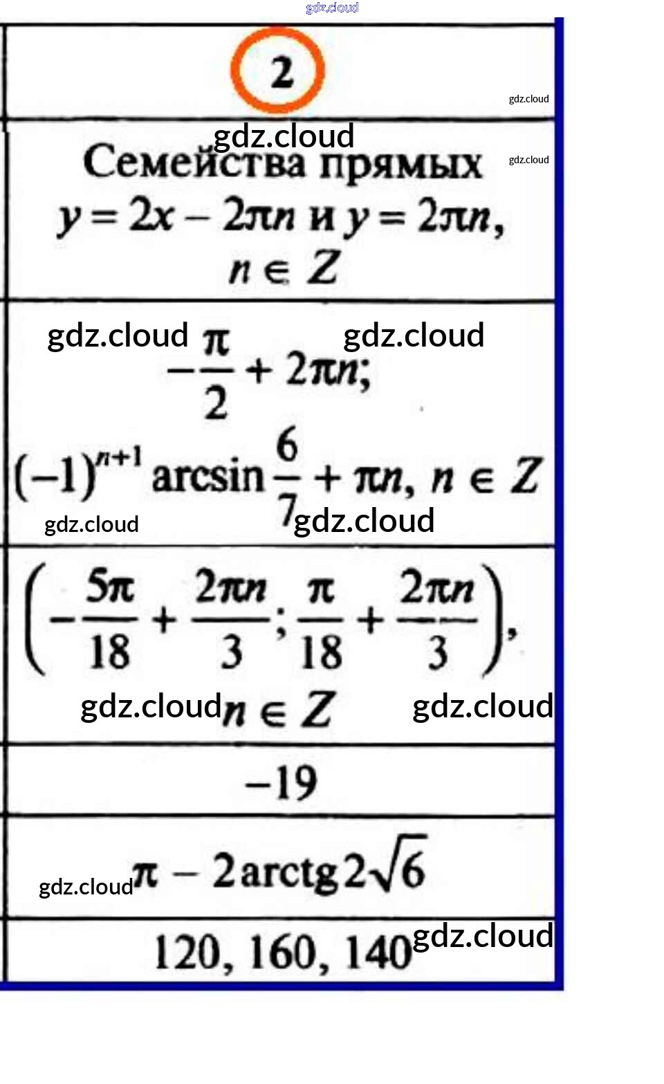 Ответ на задание 2 Контрольно-измерительные материалы (КИМ) Алгебра за 10 (десятый) класс Рурукин 2017
